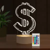 Luminária Led 3D Abajur Colorida UV Cifrão Dinheiro